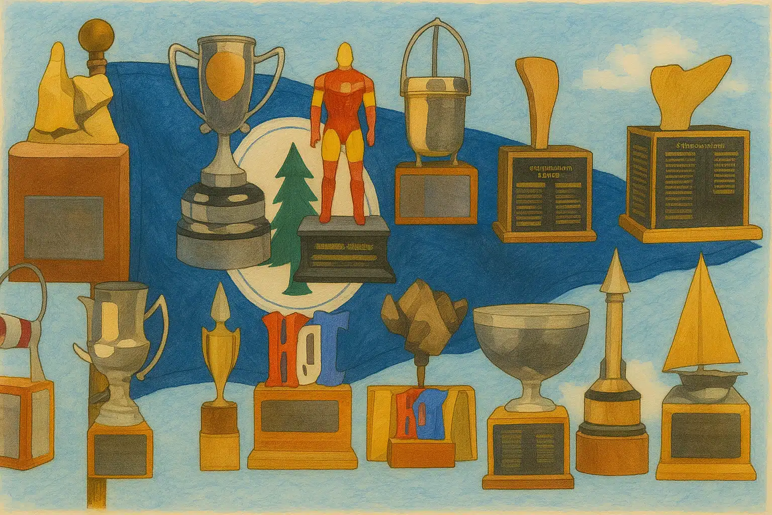 Lake Naomi Trophy Art with Lake Naomi Club Flag Mr Local History