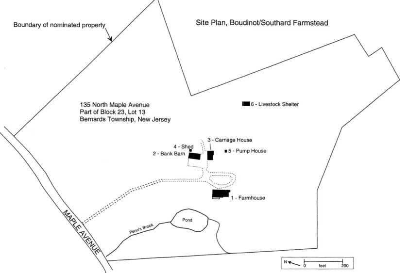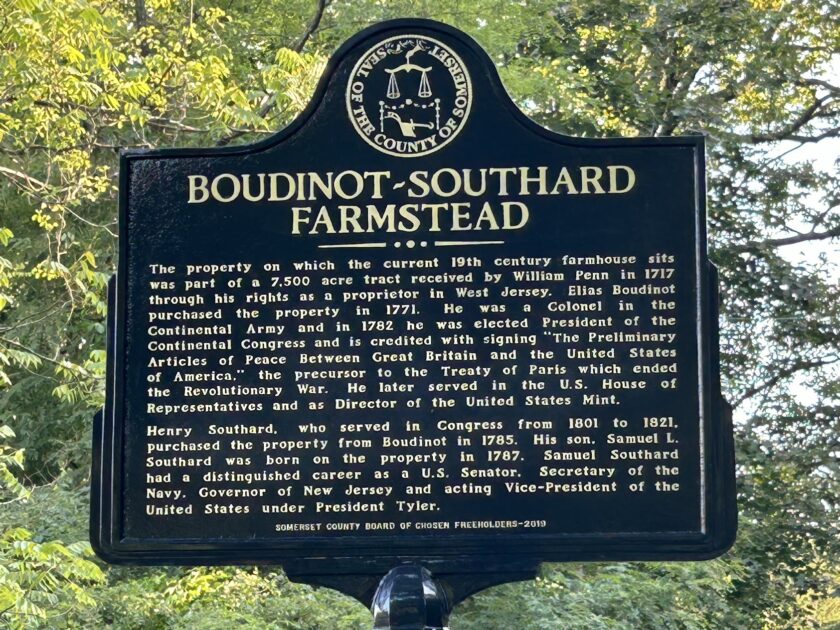 Let’s start at the beginning. In 1717, William Penn was granted 7,500 acres of land “on the branches of the Pasaick River” through his rights as a proprietor in West Jersey. One of these branches of the Passaic River would later become known as Penn’s Brook. The Boudinot/Southard Farmstead would eventually be established within this expansive tract, located along the north side of Penn’s Brook and just east of the early road that connected Basking Ridge and Morristown.
