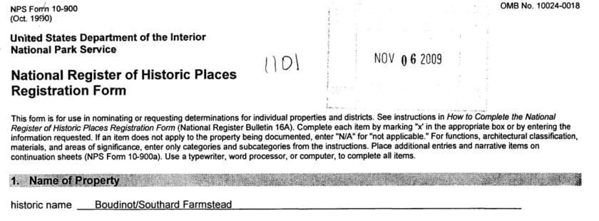 The Boudinot Southard Ross property was awarded New Jersey Register status on September 11, 2009, and subsequently added to the National Register on December 18, 2009, in recognition of its architectural, agricultural, and historical significance.