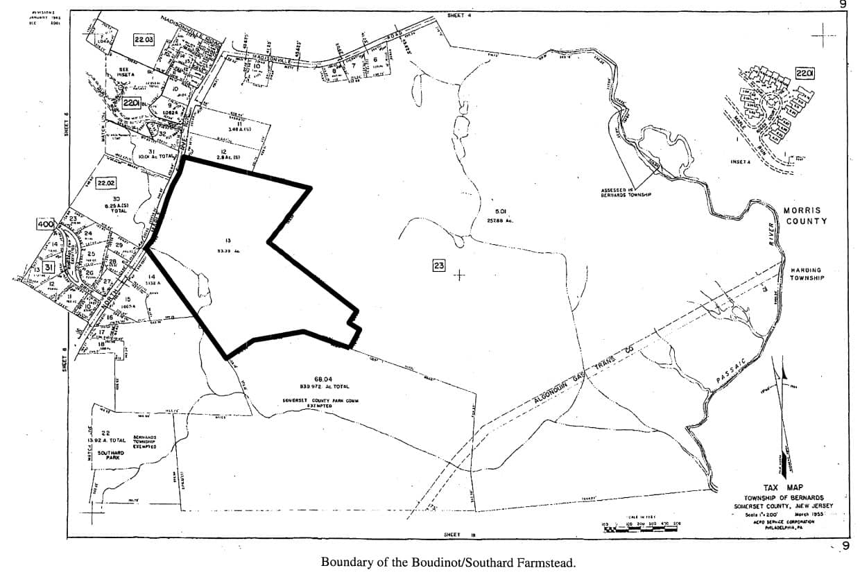 In 1818, Henry Southard of Bernards Township sold the Boudinot/Southard Farmstead and two additional properties to George Slater of New York City for $7000, with the farmstead property described as the same 102-acre parcel that Southard had purchased from Elias Boudinot in 1785.