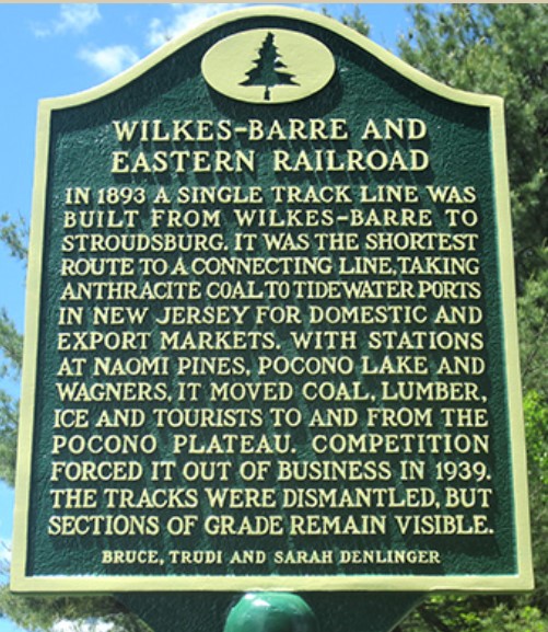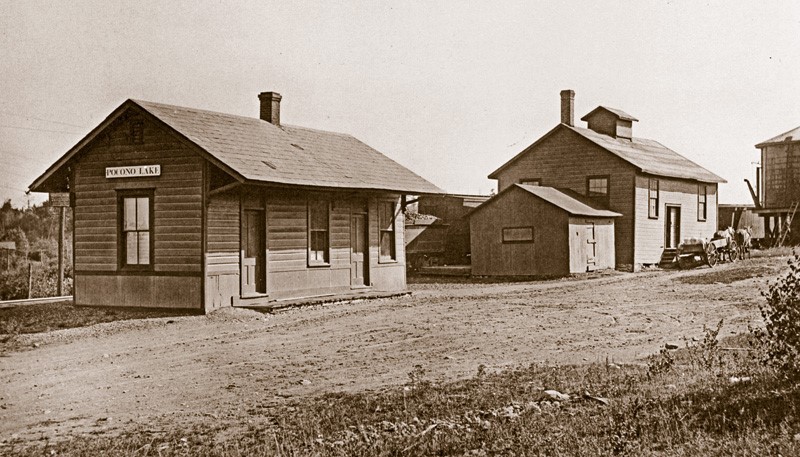 Then, finally, in 1893, a short rail spur, not part of the DL&W system, operated by the Wilkes-Barre & Eastern Railroad (WB&E), avoided Mt. Pocono to serve local stops including Naomi Pines (Lake Naomi), Pocono Lake, Crescent Lake, and Stroudsburg.