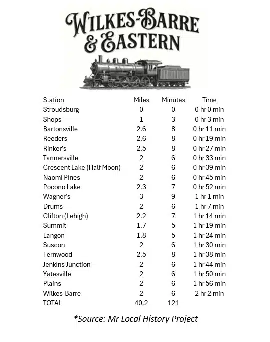 Train Stations & Stops on the Wilkes-Barre Eastern Railroad Line