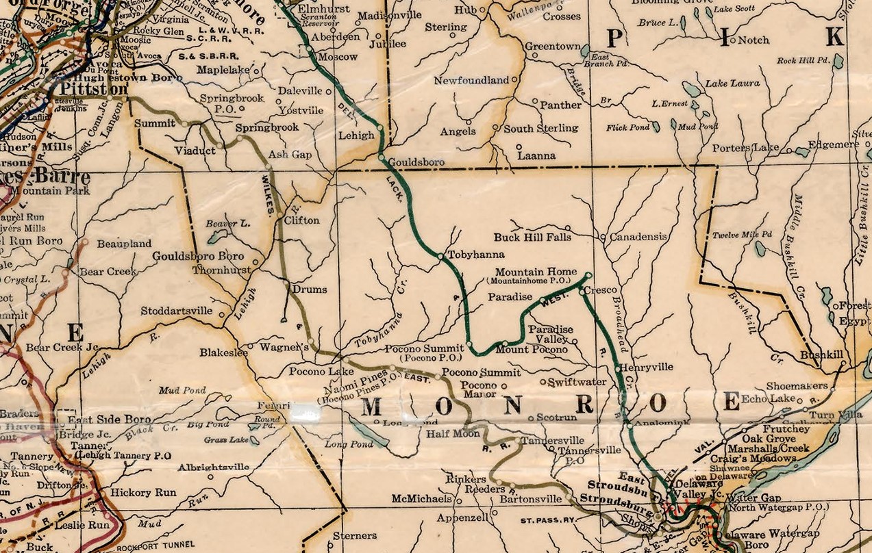 From Slateford, you’d join the DL&W mainline heading west into the Pocono Mountains. The route would take you through East Stroudsburg, Stroudsburg, Analomink, Cresco, and finally Pocono Summit.