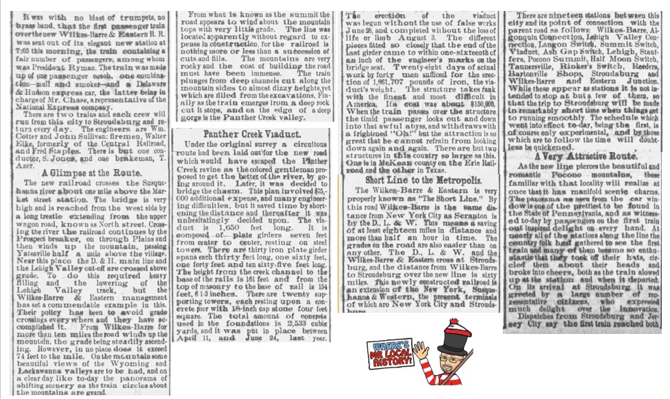 1884: The Wilkes-Barre and Eastern Railroad begin service between Wilkes-Barre and Stroudsburg.