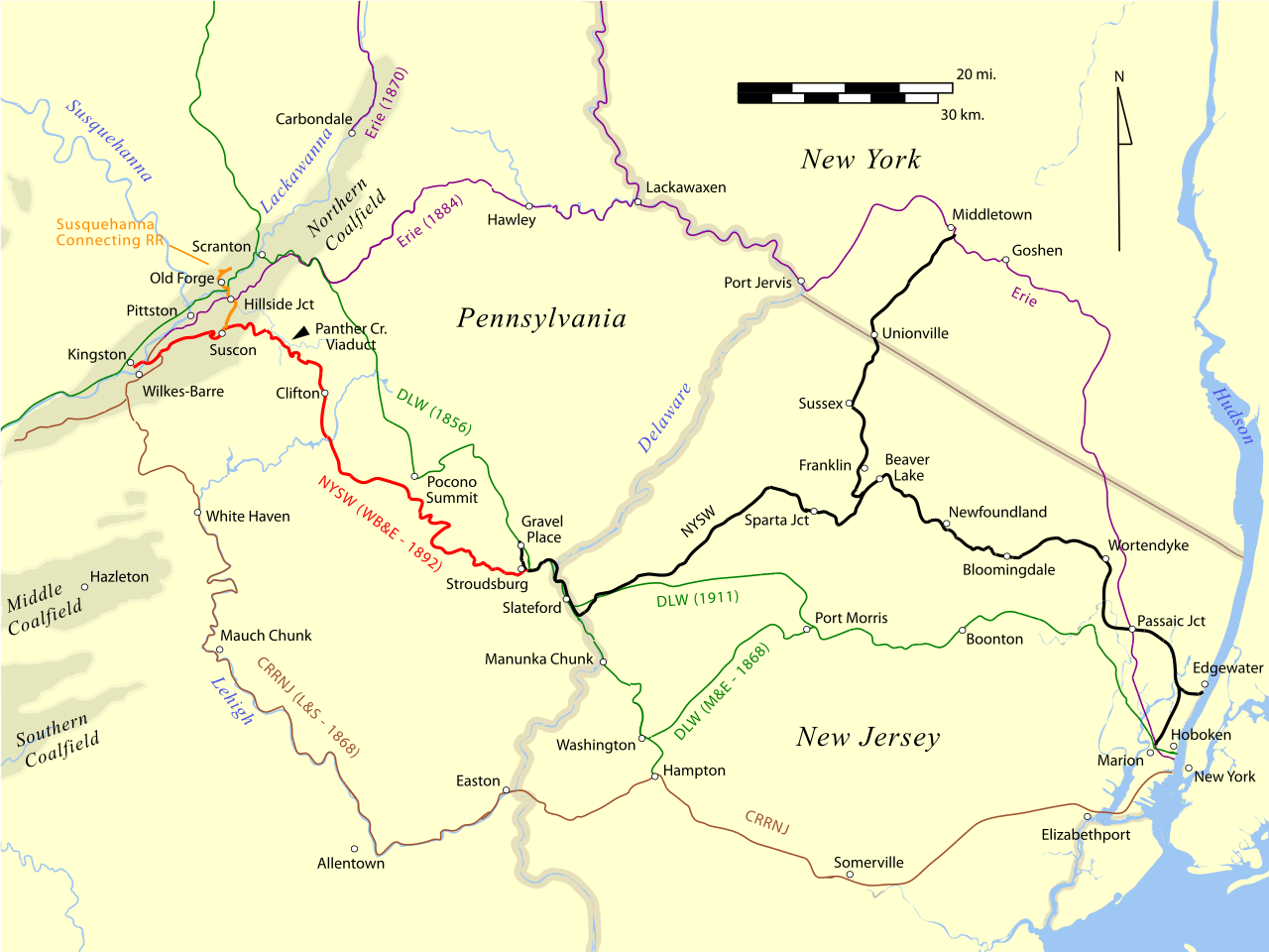 It connects with the Erie & Wyoming and the New York City and Stroudsburg.