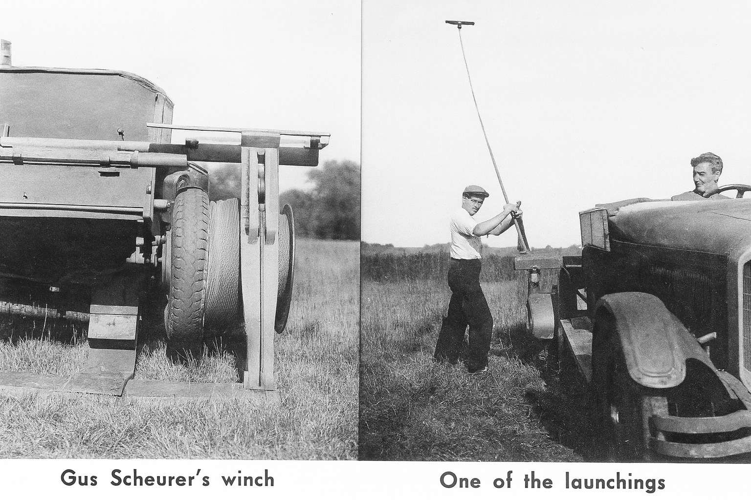 - Launch methods: car winch (2,000-ft rope) at Lyons, then auto tow, winch, and occasional airplane tow at Schley.