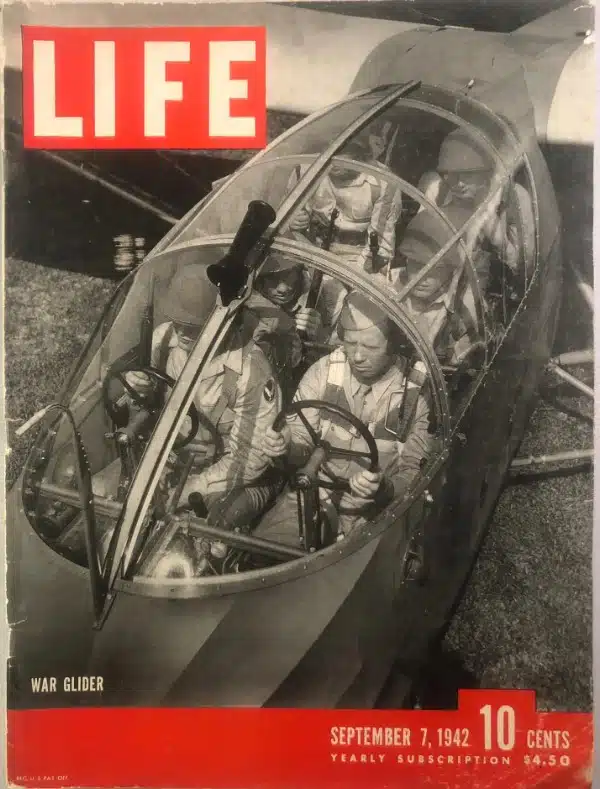 During the last Glider meet before WW2, we discovered an interesting story from Labor Day weekend in 1942, where the focus shifted to “bomb dropping” on a target by the glider contestants. Henry N. Wightman of Montclair, with his University of Michigan Flying Club, won the bomb dropping contest from 500 feet. His winning drop to the bullseye was 55 feet, 9 inches in front of almost 20,000 people.