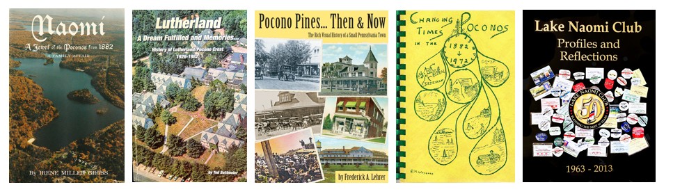 The books showcased here are some of the best references to firsthand history in the Pocono Pines area. Two are written by members of the Miller family, whose parents were the founders of Lake Naomi, who had a major influence on the area. The other two are recollections and are great reads with stories and photos. The problem is, I think all four are no longer in print, so you’d have to trek to the Clymer Library in Pocono Pines or scour the internet for someone cleaning out their bookcase. Some day, I hope to return to the Pocono Pines area and hope there’s a local history section at the Clymer Library.