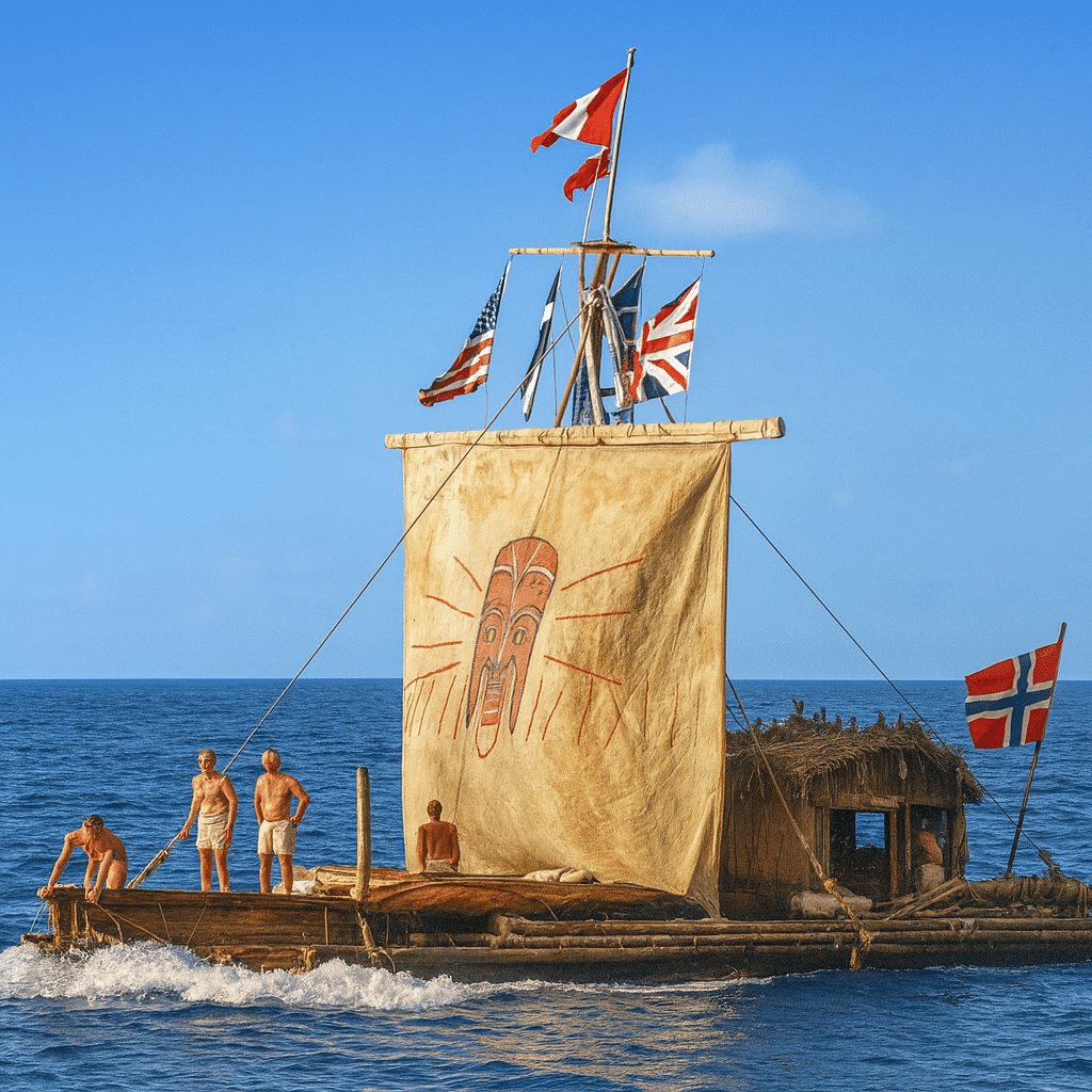 Originally, Kon-Tiki referred to a creator deity in Inca and Polynesian traditions, often tied to the idea of beginnings, journeys, and life emerging from the sea. The name gained modern fame in 1947, when Norwegian explorer Thor Heyerdahl built a simple balsa-wood raft, named Kon-Tiki, and sailed it across the Pacific. His daring voyage proved that even the most primitive vessels could survive and succeed in long ocean crossings. The raft became a symbol of exploration, adventure, and the spirit of volunteers who were willing to risk discomfort for the sake of community and discovery.