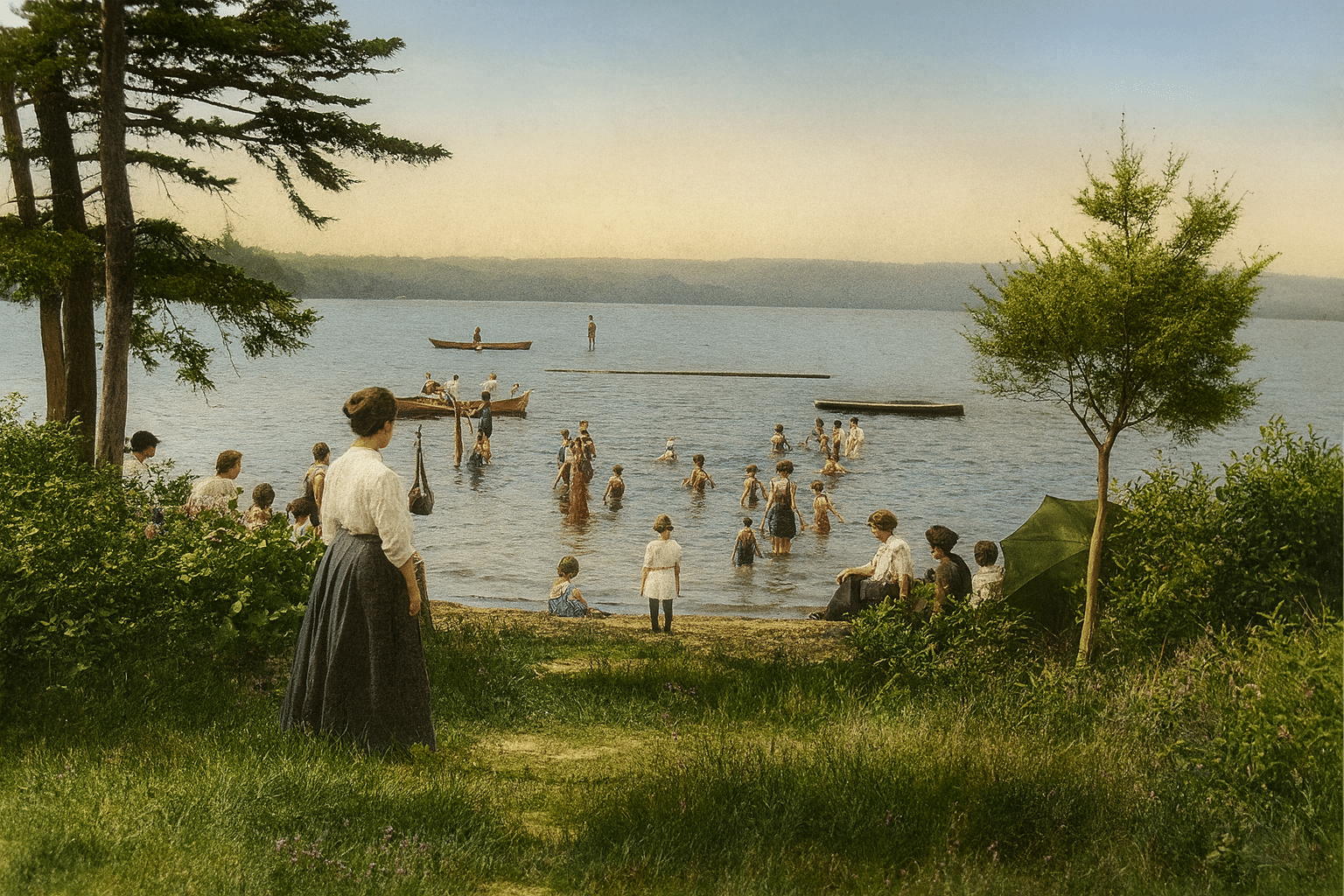 It was during this same golden age of restorative travel that Lake Naomi began to attract summer visitors. Though not a mineral spring in the traditional sense, Naomi’s clean, glacially fed waters were marketed as “pure tonic for body and spirit.” Guests at nearby lodges and cottages swam, rowed, and sailed, breathing in the resin-scented pine air, which was said to be “as curative as any sulfur draught.” Just a short carriage ride away, travelers could find small springs — some tapped by farm families for their own use, others feeding modest health resorts, where the taste of the water hinted at unseen minerals working their magic.