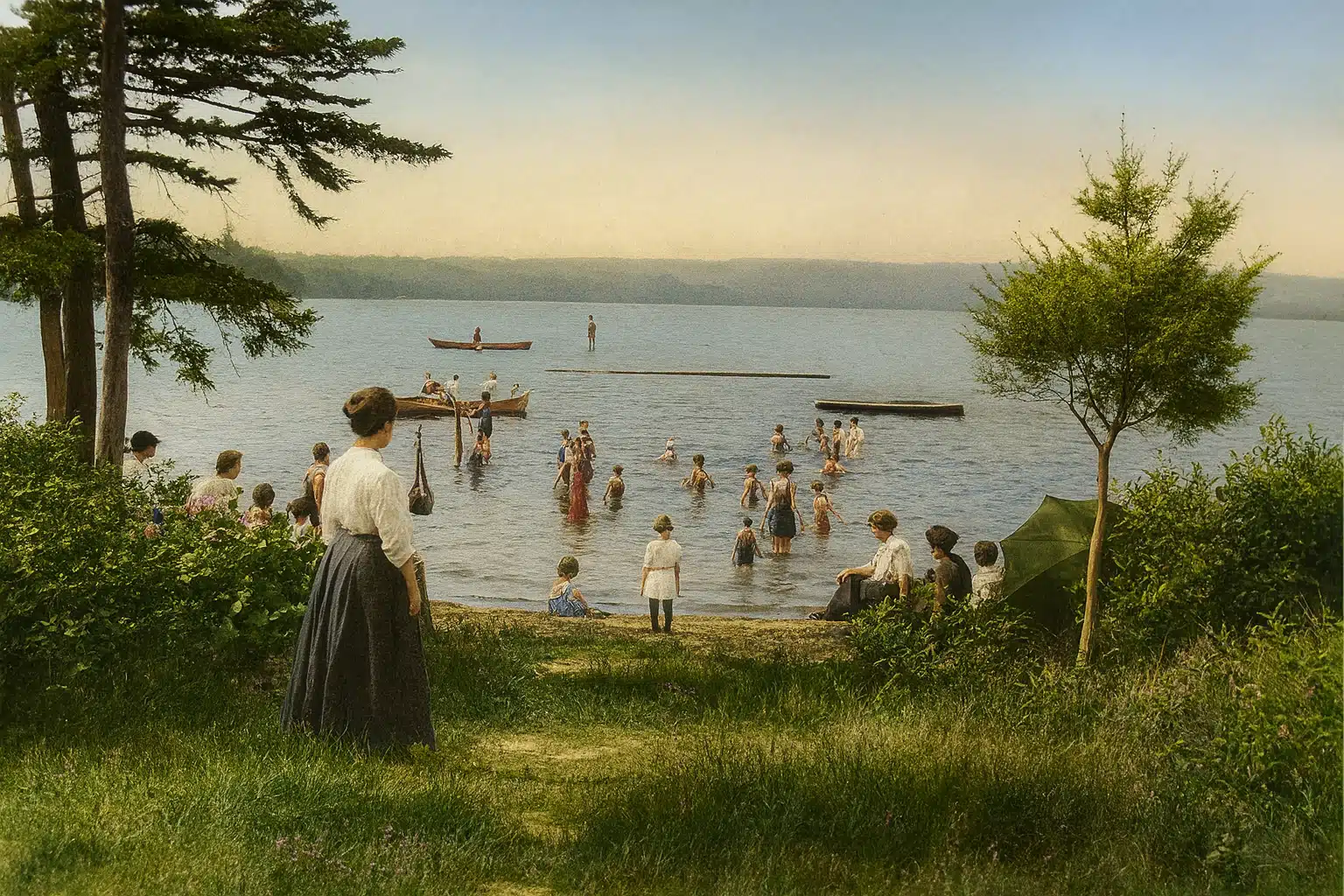 A choir, assembled from summer guests and locals alike, would begin to sing familiar hymns: “Day is Dying in the West” or “Abide with Me.” Their voices, accompanied by a pump organ or string quartet, drifted across the lake, echoing off the surrounding trees. Boaters often paused mid-lake, their canoes bobbing gently, so they could listen from the water. It was said that even the loons would fall silent during the most solemn prayers.