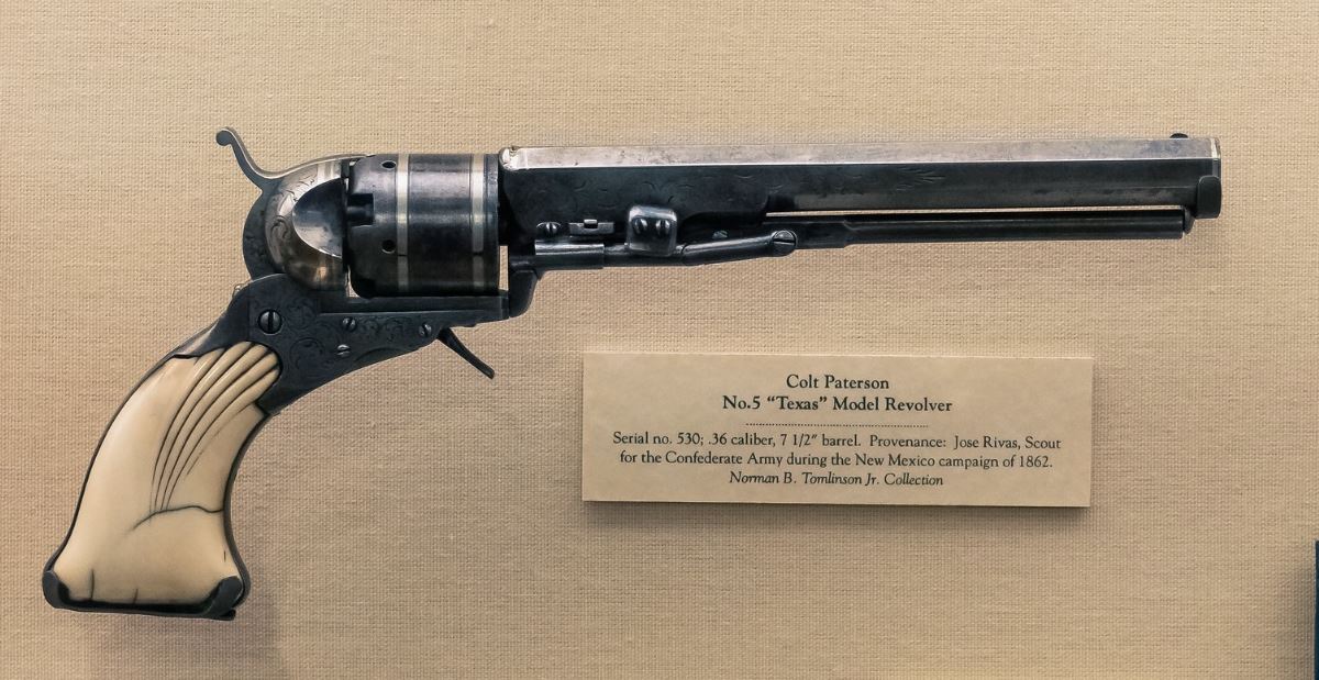 On February 25, 1836, Samuel Colt received a patent for a “revolving gun” with the 20-year US patent number 138, now known as Patent 9430X. The Colt Paterson Percussion Revolver was the first multiple-chamber revolver with a revolving cylinder. Its cylinder could hold five bullets, allowing the user to fire more times without reloading than any other firearm at the time.