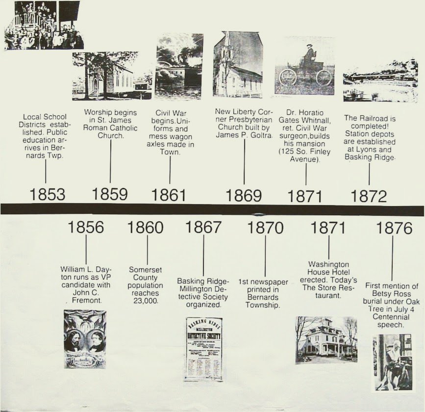 Take a visual tour of a great document that showcases key historic activities that occurred in Bernards Township. The timeline was prepared by former historian June Kennedy honoring the 250th anniversary and history of Bernards Township in 2010. In 2021 the Mr. Local History Project updated the timeline to the present.